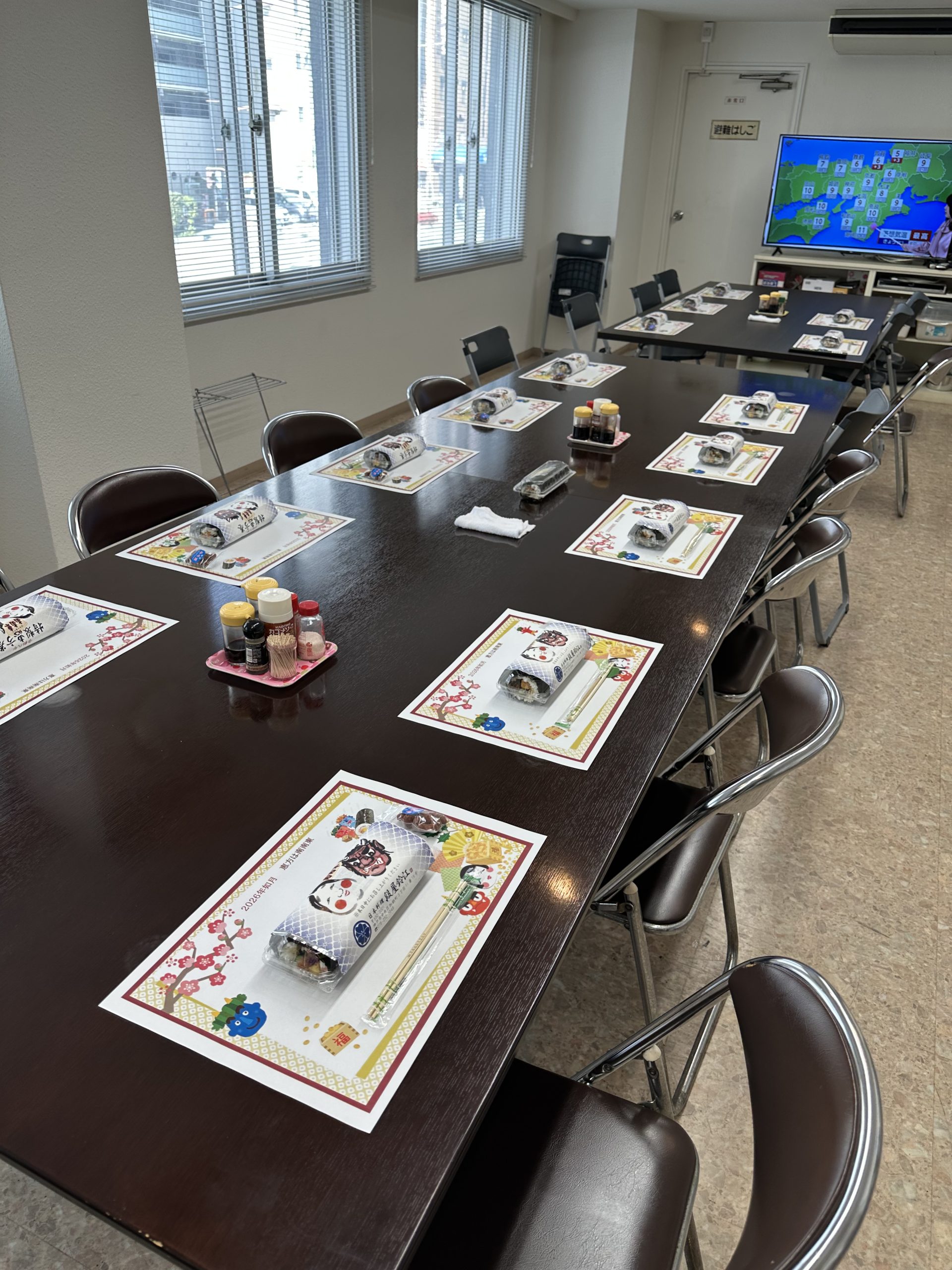 ということで、お昼には人数分の恵方巻を注文し、みんなで恵方に向かってワイワイ・・・いいえ、黙々といただきました。