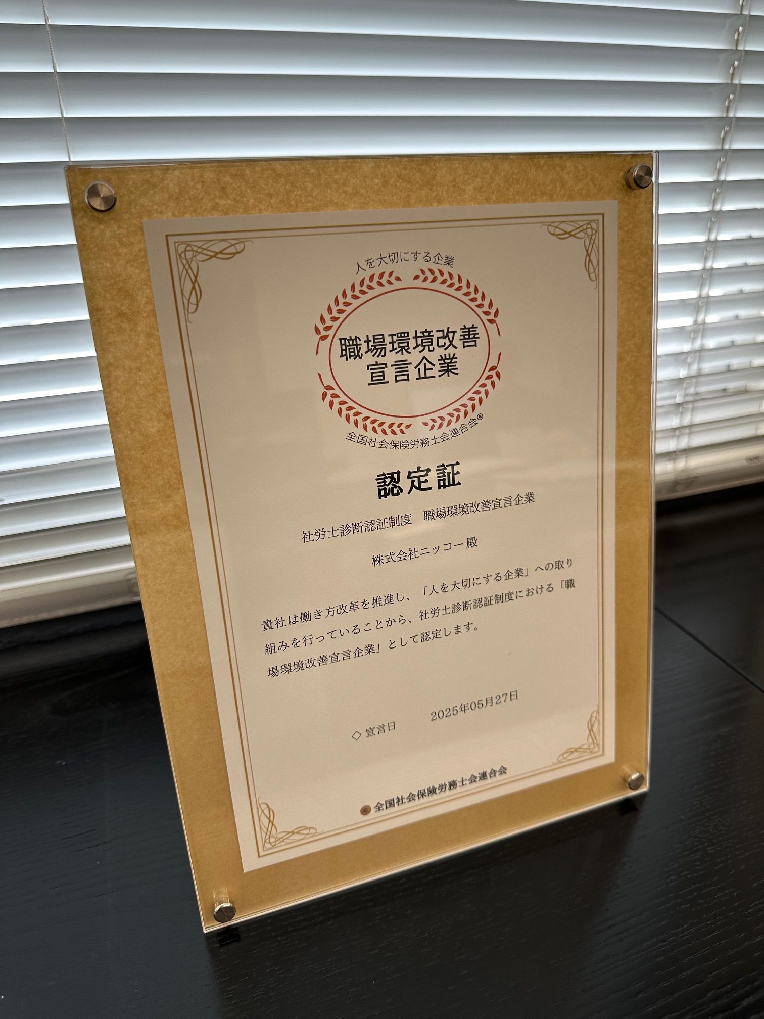 「職場環境改善宣言企業」として認定されました